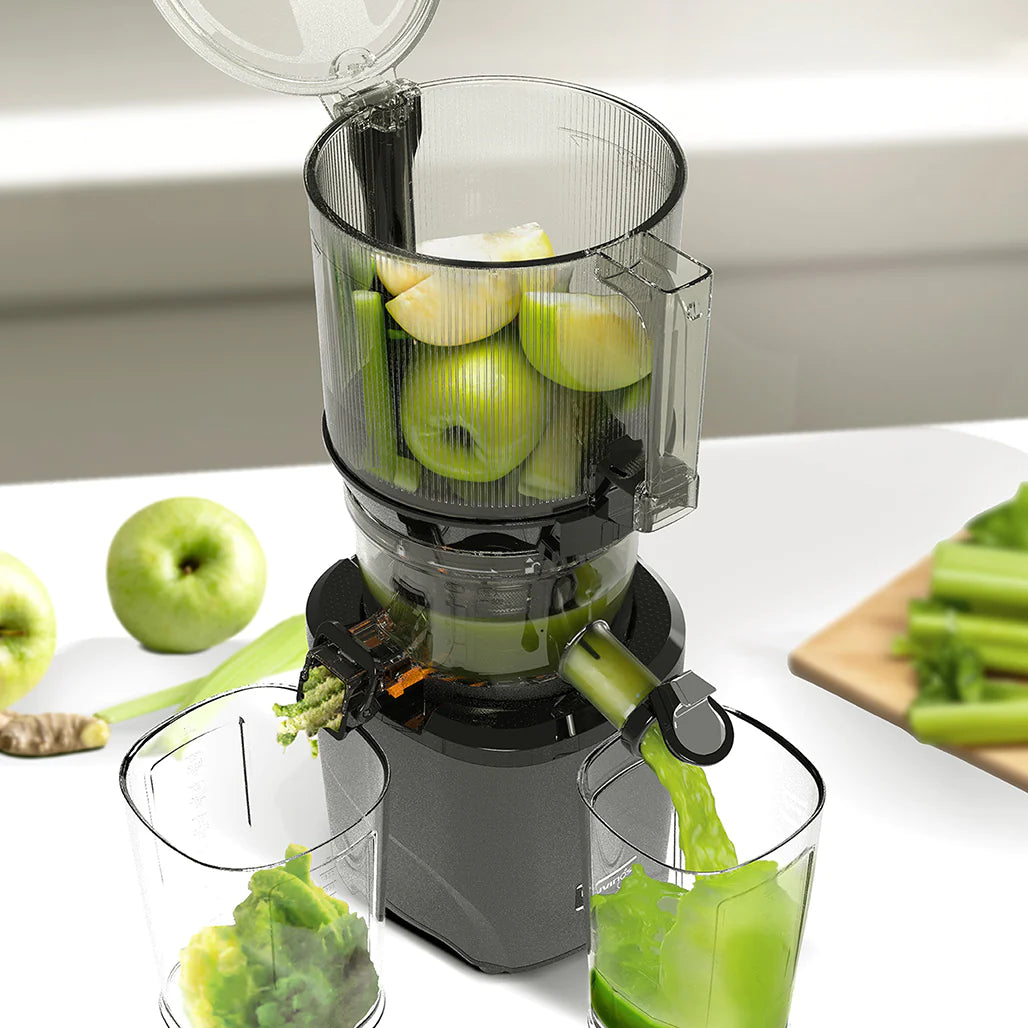 عصّارة مذهلة، يمكن وضع التفاحة كاملة دون تقطيع. عملية العصر سريعة وفعّالة جدًا، وطعم العصير طازج وناعم.