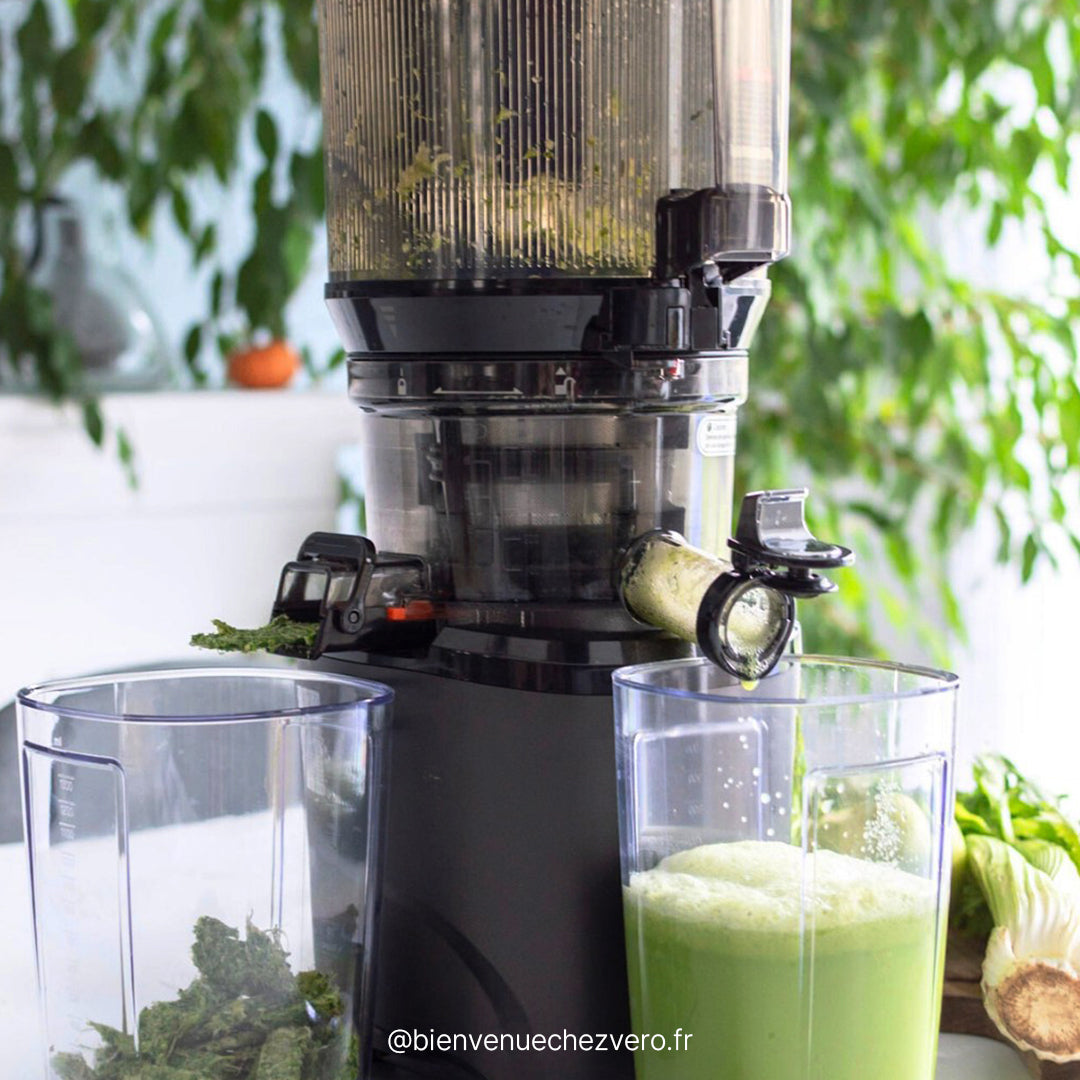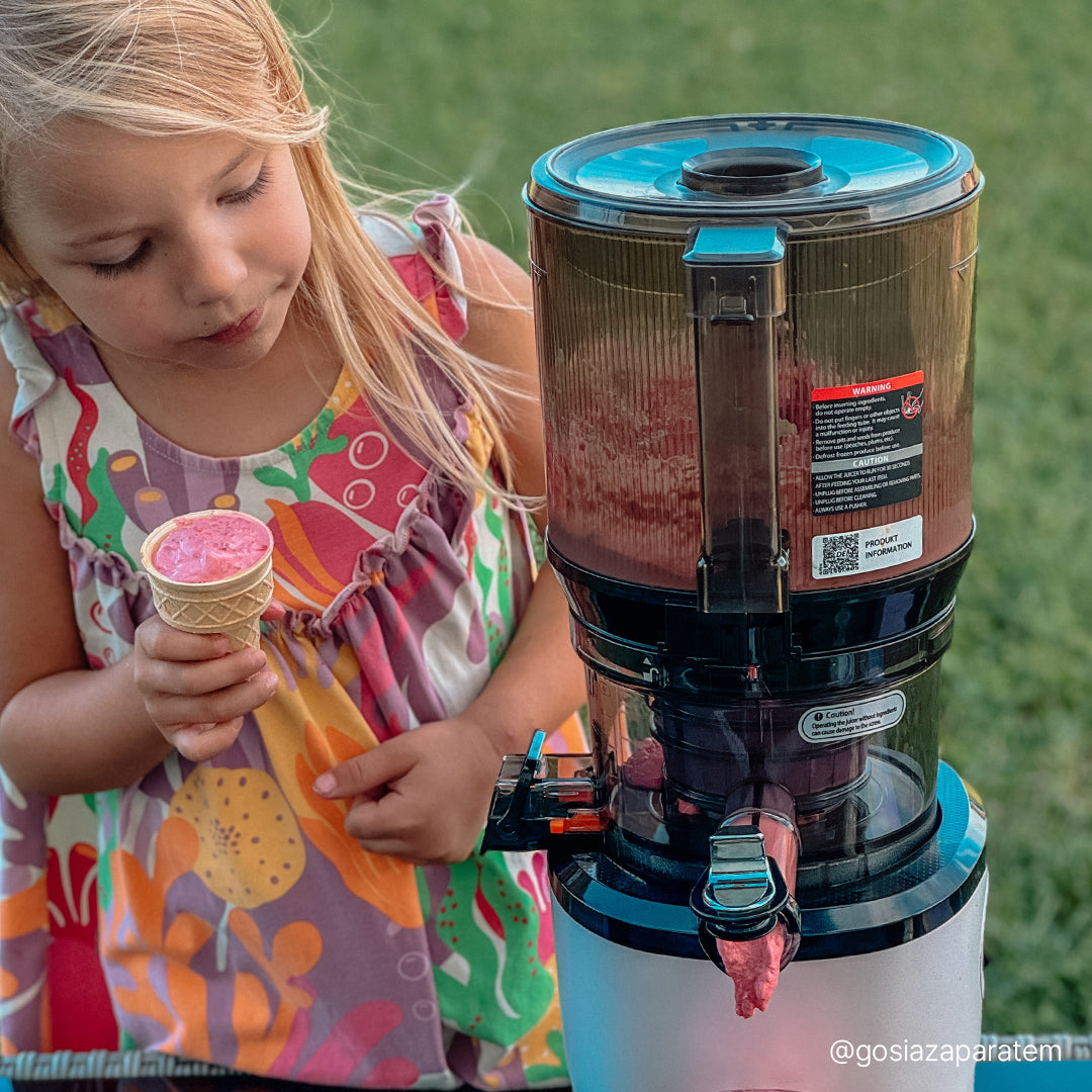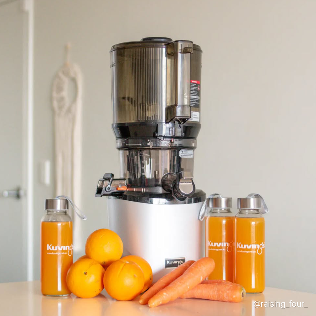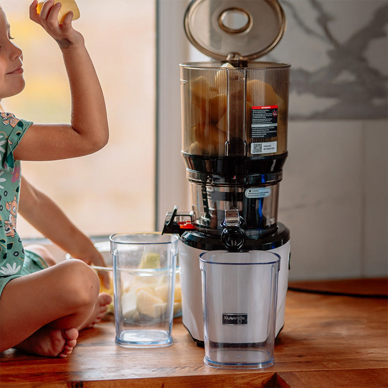 أطفالي يستمتعون كثيرًا بعصر جميع أنواع الفواكه والخضروات، لدرجة أن الأمر أصبح نشاطًا عائليًا كل صباح. شكرًا لك كوفينغز!